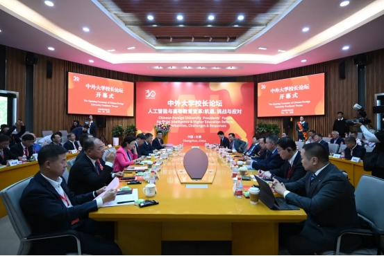 9月20日,正值吉林外国语大学建校30周年之际,中外大学校长论坛在吉林外国语大学国际交流中心举行。来自15个国家的82所大学校长及专家学者围绕“人工智能与高等教育变革:机遇、挑战与应对”这一议题进行对话交流,分享改革经验与成果,探讨未来发展与合作。