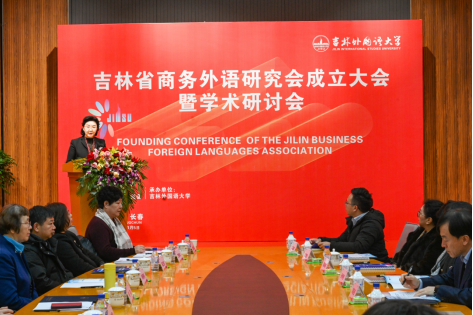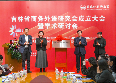 1月5日上午,吉林省商务外语研究会成立大会暨学术研讨会在国际交流中心举行。秦和校长与吉林省社会科学院副院长郭连强、省外语学会会长张玫玫、省民政厅社会组织管理局局长吴志伟共同为“吉林省商务外语研究会”揭牌,标志着该研究会正式落户吉林外国语大学。